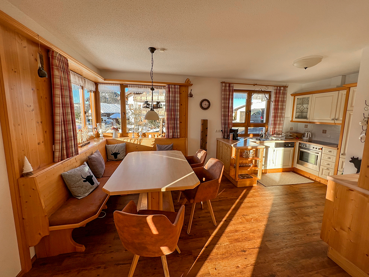 Das exklusive Appartements verfügt über einen offenen Wohn- und Essbereich mit Ausziehcouch und ist mit einem voll eingerichteten Küchen­bereich (Herd, Backofen, Spülmaschine, Senseo-Kaffeemaschine, Filterkaffeemaschine, Wasserkocher, Toaster), SAT-TV und Fön ausgestattet. Bettwäsche und Handtücher sind ebenfalls inklusive. Zusätzlich verfügt das Haus über einen Skikeller mit Skischuh­wärmer und einen eigenen Parkplatz direkt vor dem Haus.